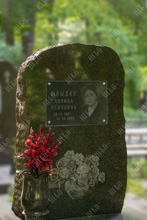 Фото на ритуальном изделии изготовлено методом гравировки алмазными иглами на черном граните. Далее фотография вставлена в памятник из выбранного материала, создавая эффект контрастности. Такой способ вставки изображения применяется в случае изготовления памятника из материалов светлых, серых, коричневых и других оттенков, гарантируя фотографии четкость и наилучшее качество, а готовому изделию долговечность. Благодаря использованию технологии гравировки на граните, фото не потускнеет со временем, не исказится и сохранит первозданный вид десятки лет.