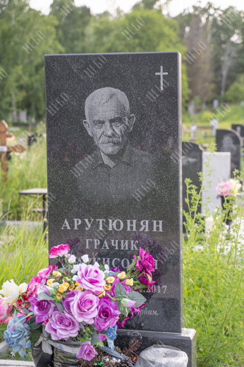Для изготовления памятника использован гранит карельский габбро-диабаз. Это горная порода, отличающаяся прочностью и повышенной износостойкостью. Карельский габбро-диабаз устойчив к влаге и перепадам температур. Его плотность выше, чем у мрамора, поэтому именно его использовали при воздвижении вековых колонн исторических зданий. Гранитный памятник габбро-диабаз не требует особого ухода, обладает насыщенным черным цветом, что делает внешний вид памятника благородным и лаконичным.