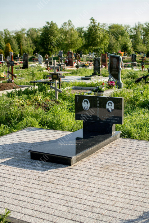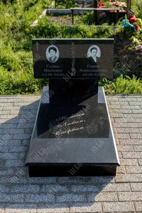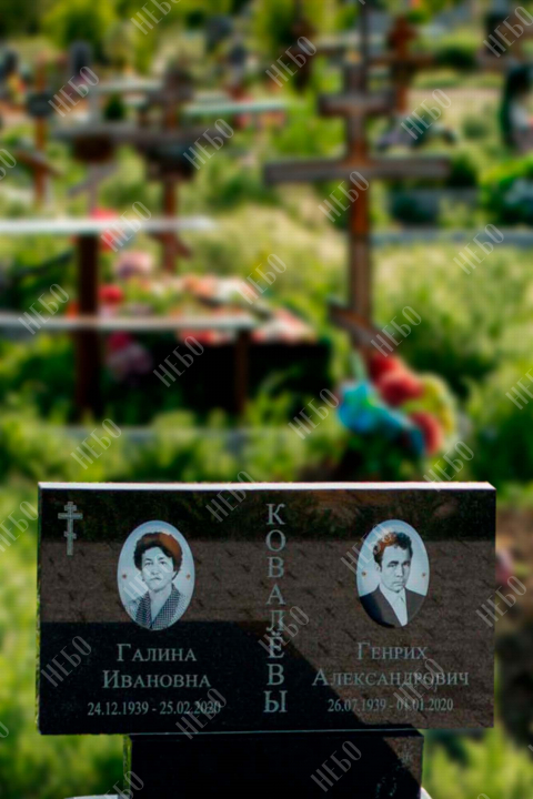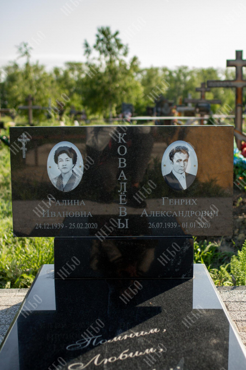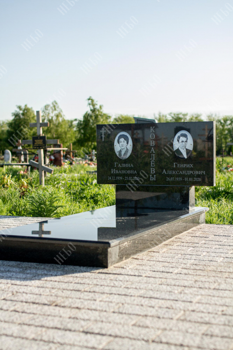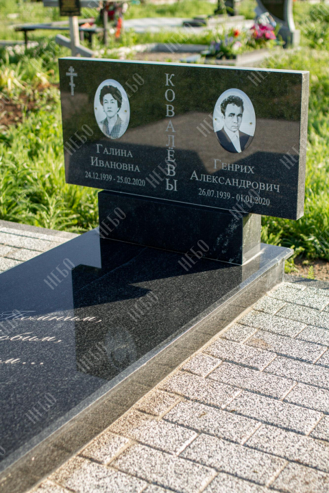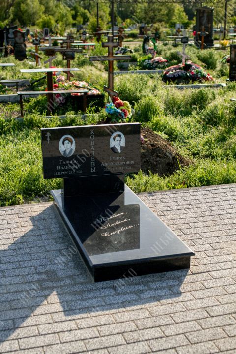 Горизонтальный памятник для родителей выполнен в сдержанном лаконичном стиле. Надгробная стела прямоугольной формы содержит информацию об усопших и их фотографии. Она отлично сочетается с закрытым гранитным надгробием. Такое решение является практичным, экономичным и значительно упрощает уход за ритуальным изделием. Размеры памятника тщательно проработаны специалистами, что гарантирует конструкции долговечность и надежность.